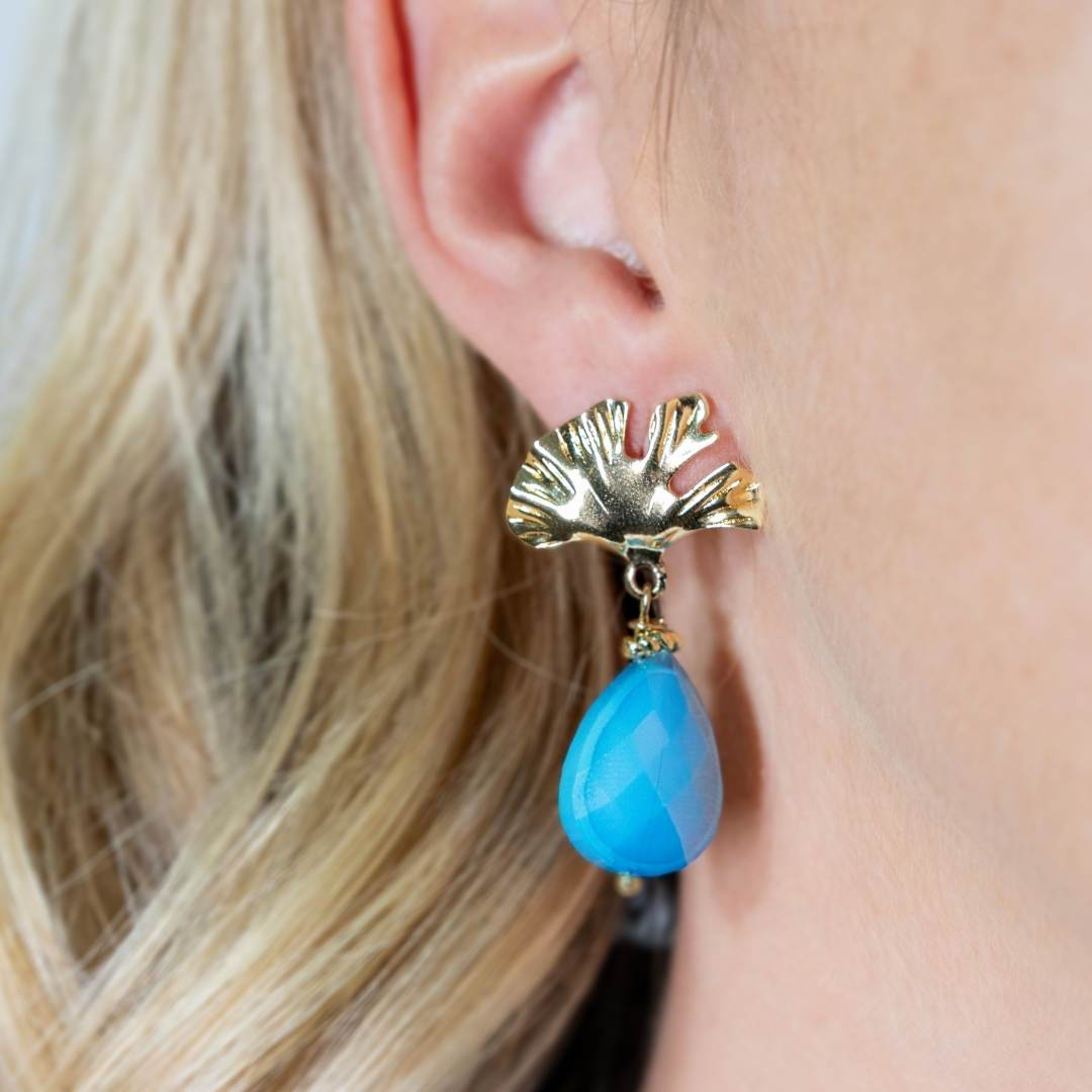 Shine on those gloomy days with Blue Days earrings. Handcrafted with gemstones and 18K gold plated finishings, these unique earrings will add a touch of glamour to any outfit. Embrace the blues in style.