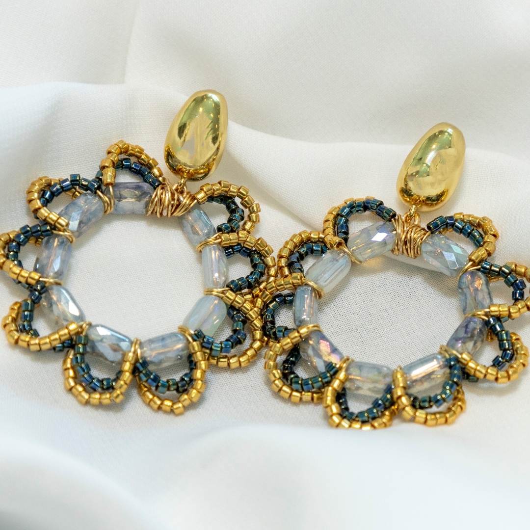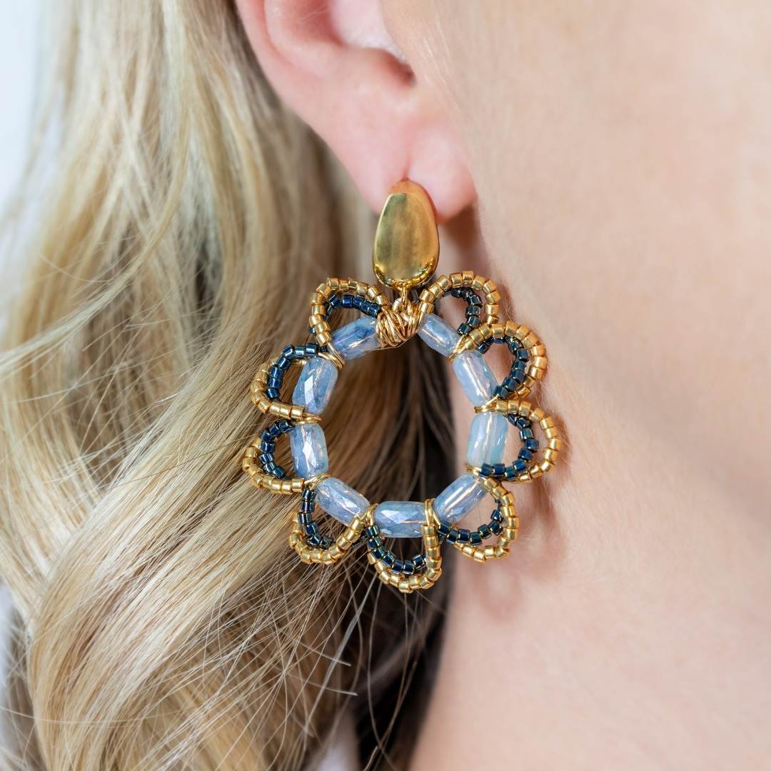 Introducing the Blue Flower earrings, handmade with Japanese grade A glass beads and 18K gold plated finishing for a look that's as unique as you (and also incredibly stylish). These flower-shaped beauties will add a touch of whimsy and elegance to any outfit. Bloom with confidence!