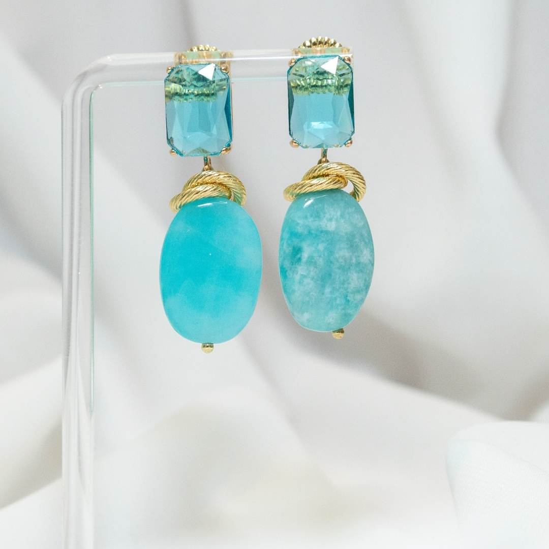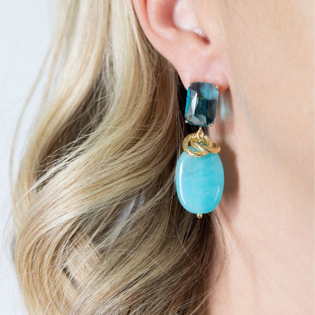 Make a stylish statement with Blue Moon earrings! These handcrafted earrings feature oval gemstones and 18K gold finishing for a pop of color. Perfect for adding a touch of playfulness to any outfit.
