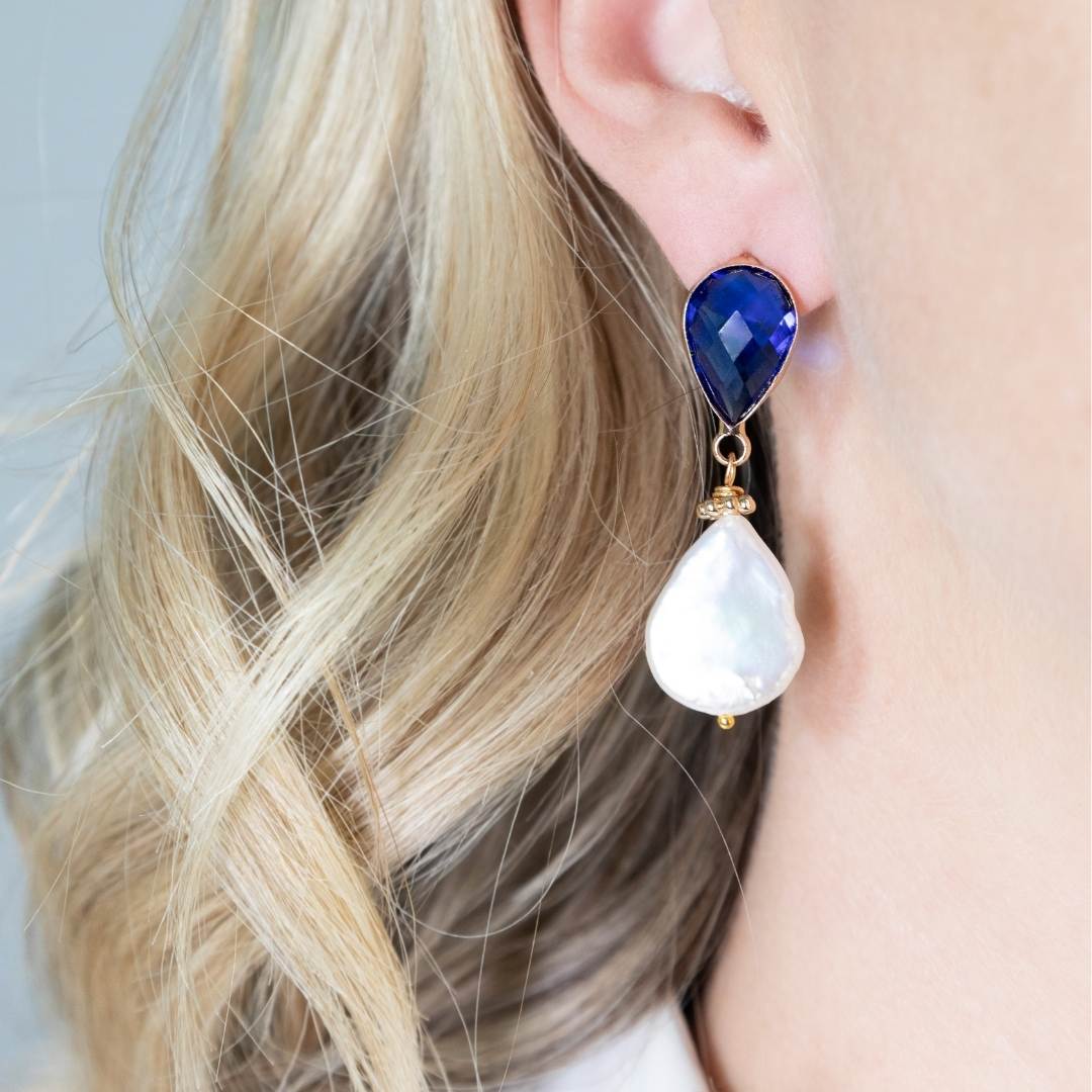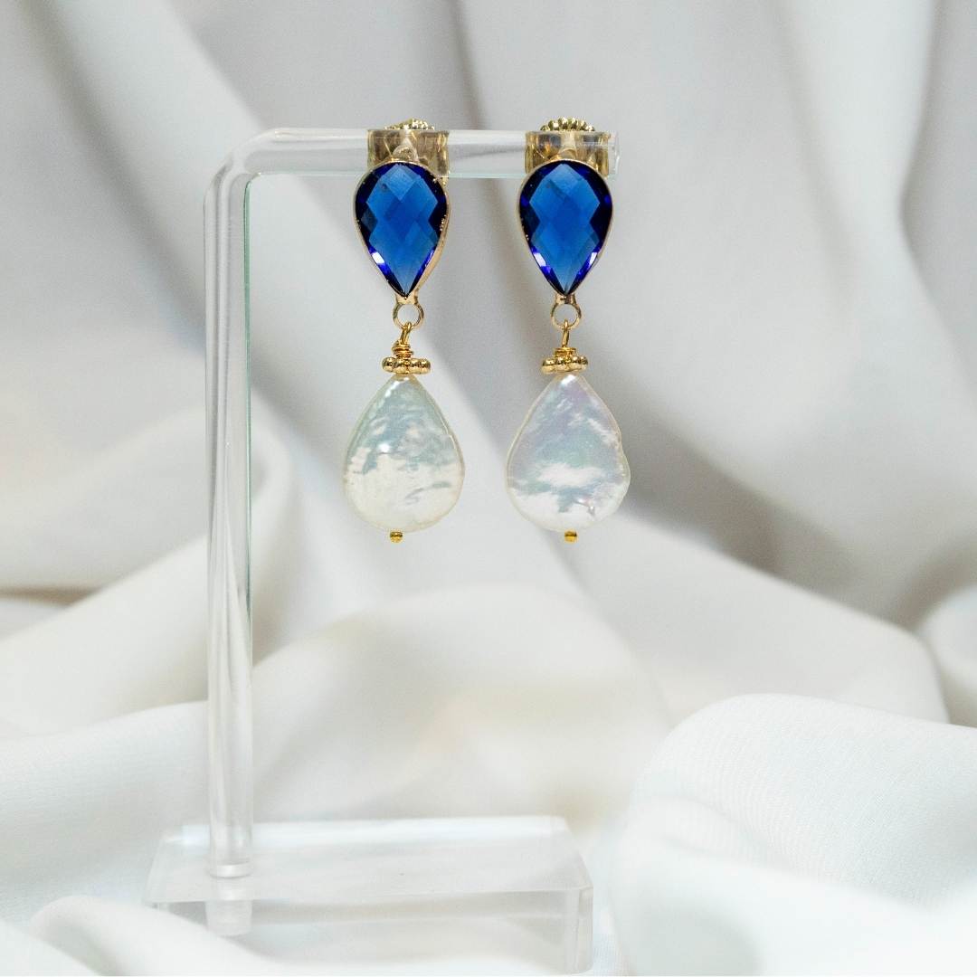 Indulge in the luxurious elegance of our Blue Night Pearl earrings. Crafted with genuine teardrop shaped mother of pearl and finished with 18K gold plating, these earrings effortlessly combine sophistication and artisanal craftsmanship. Elevate any outfit with the unique and timeless beauty of Blue Night Pearl.
