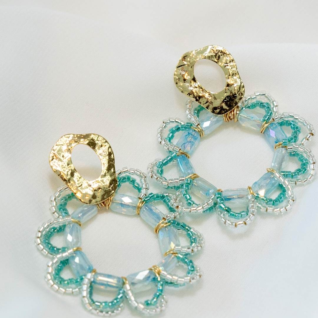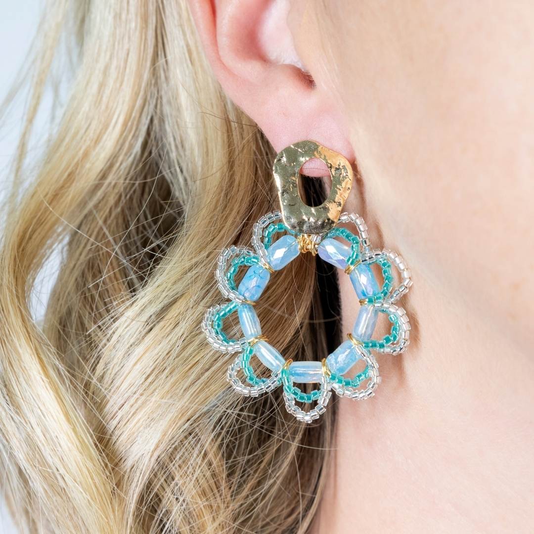 Introducing our exquisite Blue Ocean Flower earrings, handmade with meticulous detail using grade A Japanese glass beads. These stunning earrings feature a unique flower shape and evoke a sense of luxury and artistry. Elevate your style and make a statement with these exclusive earrings.