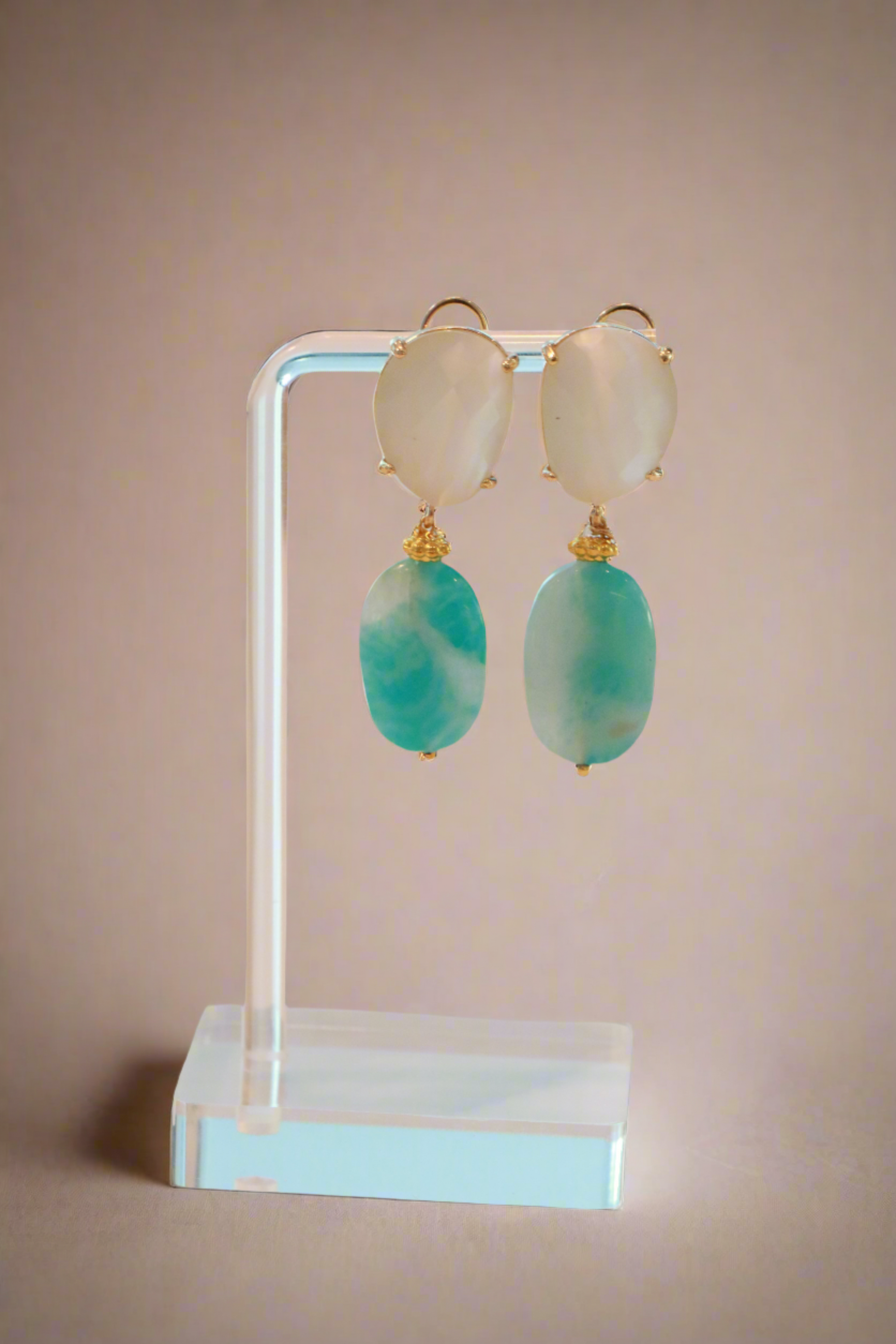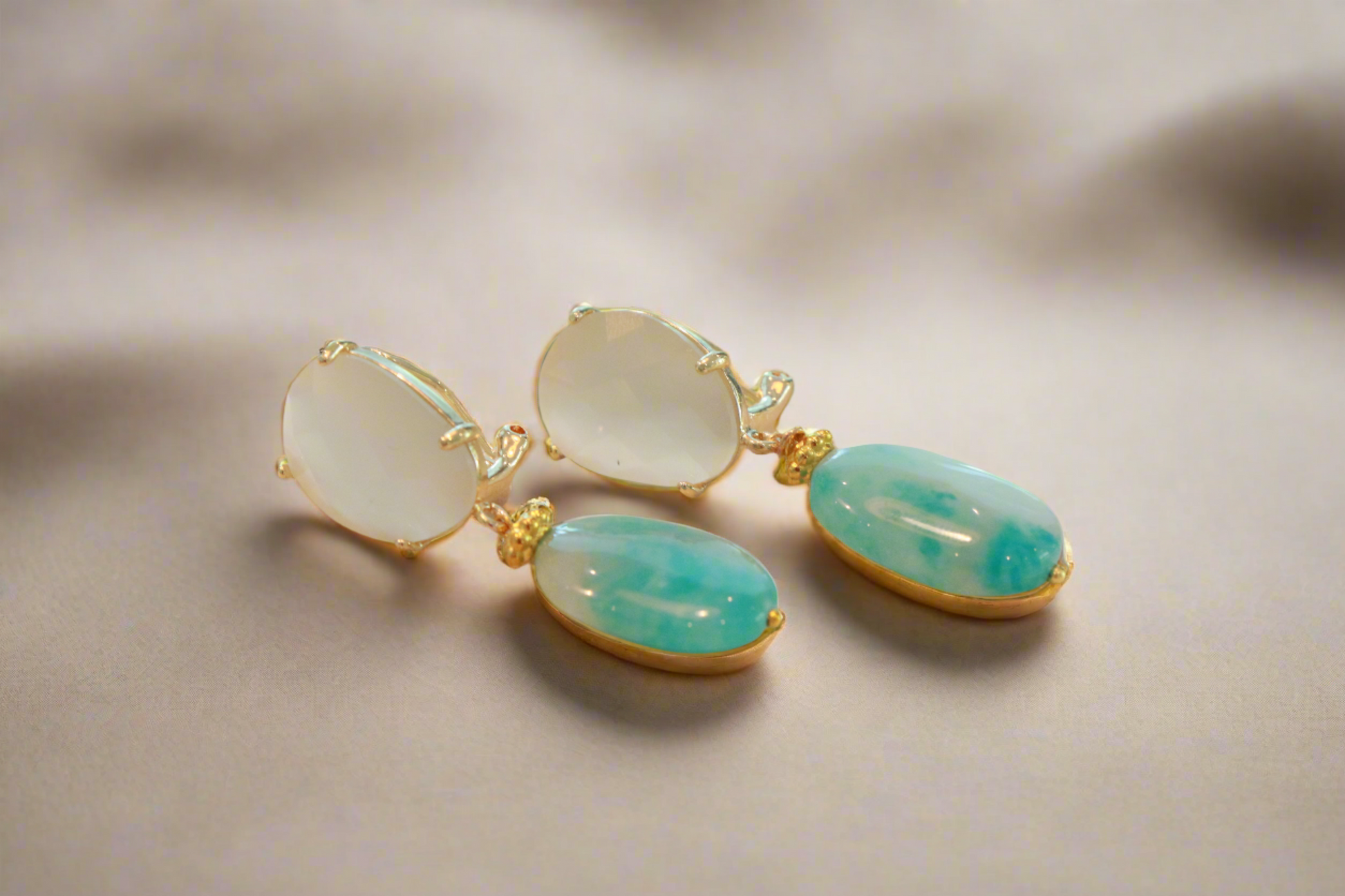 Dive into style with our Ocean earrings! Crafted with gemstones and 18K goldplated finishing, these earrings will add a touch of elegance to any outfit. Make waves with these beauties and stand out from the crowd. (Sea what we did there?)